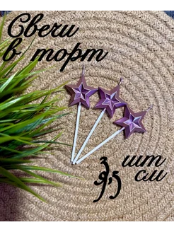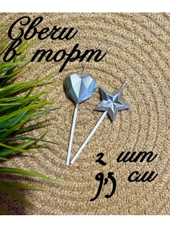 Свеча фигурная в торт 2 штуки сердце + звезда