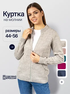 Кофта теплая вязаная укороченная на молнии большие размеры