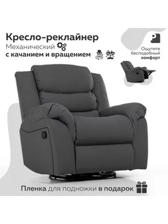 Кресло качалка реклайнер CLOUD механический, экокожа серый
