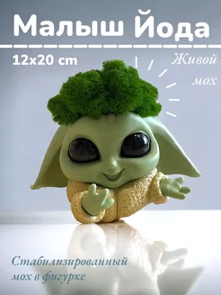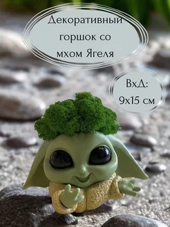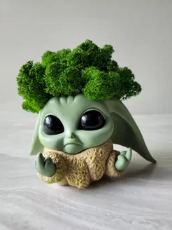 Фигурка малыш Йода вазон с зелёным стабилизированным мхом