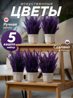 Искусственное растение и цветы в кашпо Осока и Лаванда