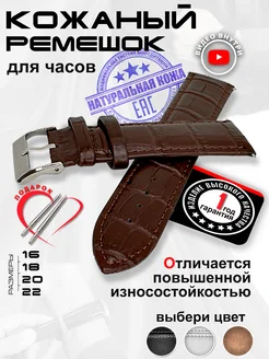 Ремешок для часов кожаный 16 18 20 22 мм коричневый крокодил