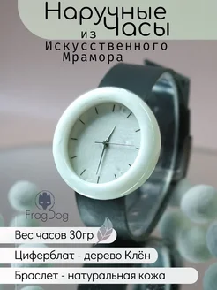 Часы наручные белые "Пастила" акриловый камень, браслет кожа