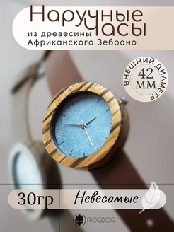 Часы наручные деревянные Зебрано BLUE MAPLE