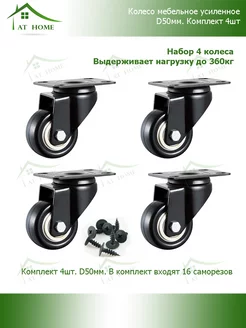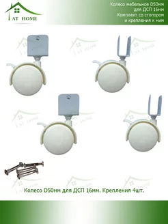 Колесо белое мебельное для ДСП 16мм D50мм 4шт