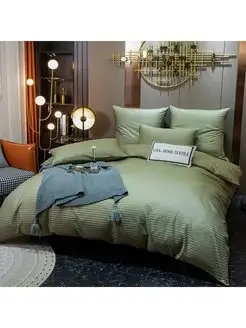Постельное белье евро, однотонное, страйп сатин, Евро