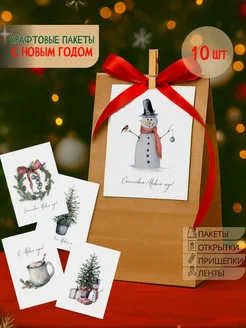 Крафтовые пакеты для подарков на Новый год "Дед Мороз" 10 шт