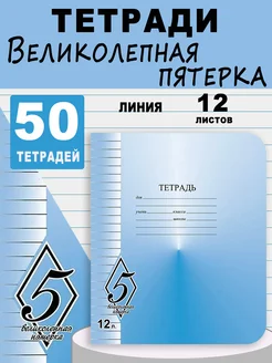 Набор тетрадей 12л, линия, Великолепная пятерка, Маяк, 50шт