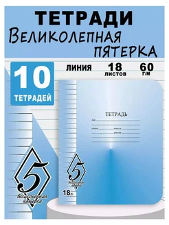 Набор тетрадей 18л, линия, Великолепная пятерка, Маяк, 10шт