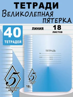 Набор тетрадей 18л, линия, Великолепная пятерка, Маяк, 40шт