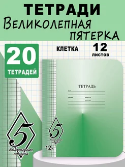 Набор тетрадей 12л, клетка, Великолепная пятерка, Маяк, 20 ш
