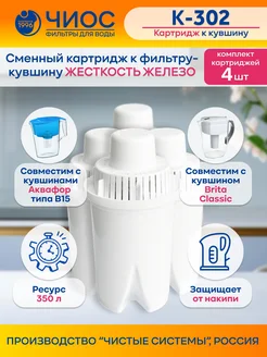 Сменный картридж К302 к Брита CLASSIC Жесткость Железо 4 шт