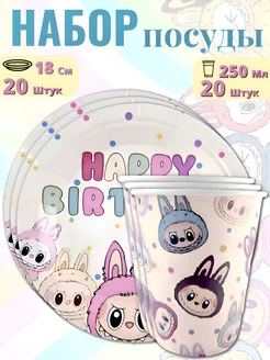 Одноразовая посуда для праздника игрушка Лабубу 20 персон