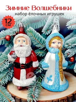 Новогодние игрушки на елку Дед Мороз и Снегурочка 2 шт 12 см