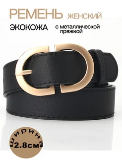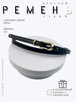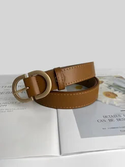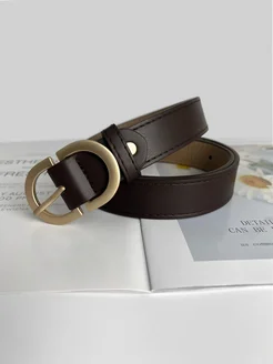 Ремень кожаный с золотой пряжкой для платья или джинс