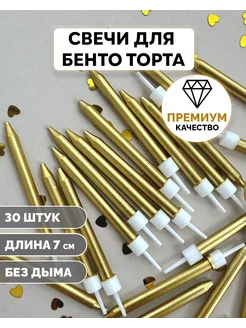 Свечи для бенто торта Набор 30 шт Белые с золотым