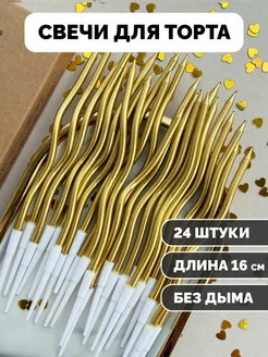 Свечи для торта волнистые белые с золотыми точками, 24 шт