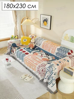 Плед покрывало вязаный на диван кровать кресло 180x230 коты