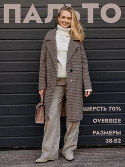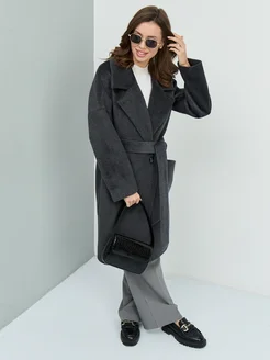Пальто демисезонное шерстяное длинное с поясом оверсайз