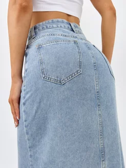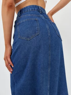 Юбка джинсовая миди с разрезом спереди