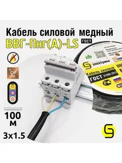 Кабель ВВГнг(А)-LS 3x1,5 100м плоский ГОСТ для проводки