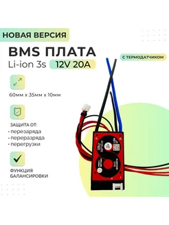 Плата БМС НОВАЯ ВЕРСИЯ Li-ion 3s 12v 20A для аккумулятора