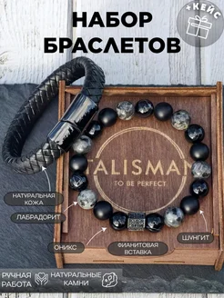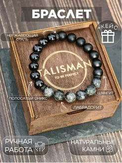 Мужской браслет из камней Лабрадорит, Оникс, Шунгит