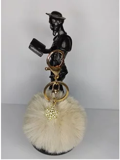 Милый брелок пушистик с подвеской Снежинка