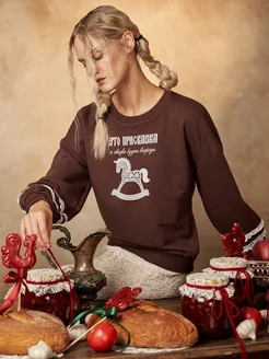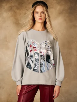 Свитшот с объемными рукавами и кружевным принтом "Присказка"