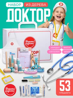 Набор доктора детский деревянные игрушки 53 шт + фартук