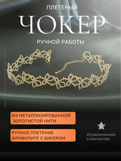 Чокер на шею кружевной золотистый с бисером