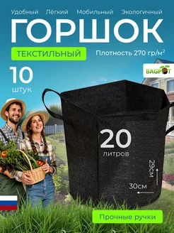 Горшок текстильный с ручками для растений 20 л. Набор 10 шт