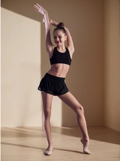 Шорты для девочки двойные для гимнастики и танцев сетка