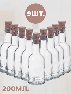 Бутылка стеклянная с пробкой, 200 мл. 9 шт