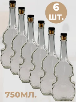Стеклянная бутылка Скрипка 0,75л для коньяка, 6 шт