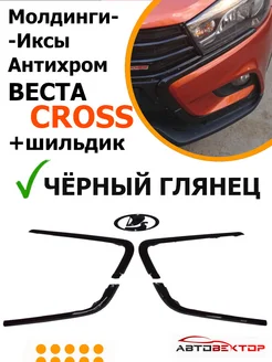 Молдинги бампера АнтиХром Веста Кросс + шильдик Ладья