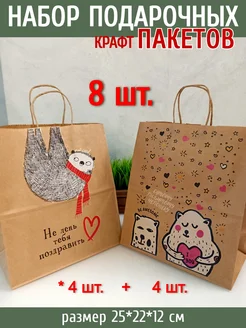 Пакет подарочный крафт прикольный с надписью набор 8 шт