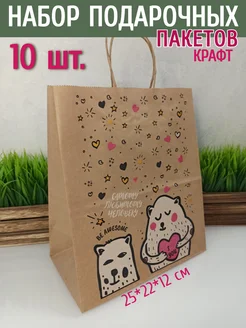 Пакет подарочный крафт прикольный с надписью набор 10 шт