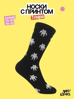 Носки высокие с принтом Кот Кач