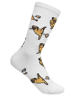 Носки высокие с принтом мопс белые