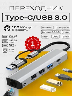 Переходник LAN 5 в 1 USB - Type-C