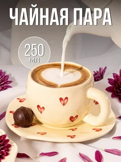 Чайная пара с сердечками, набор кружка и блюдце