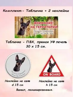 Табличка злая собака Русский той гл. + 2 наклейки на авто