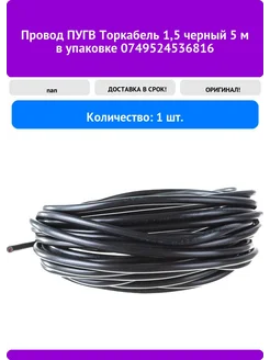 Провод ПУГВ 1,5 черный 5 м в упаковке 07495245368