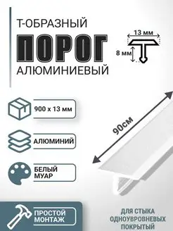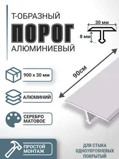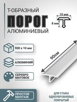 Порог алюминиевый для пола Т-образный серебро 10x900мм 3шт