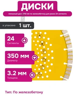 Алмазный сегментный диск по железобетону 350 мм для резки
