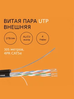 Кабель ОМЕДНЕННЫЙ UTP 4PR CAT5е 305м ВНУТРЕННИЙ