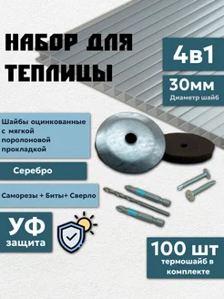 Пресс-шайба для поликарбоната оцинкованная 30 мм набор 4 в 1