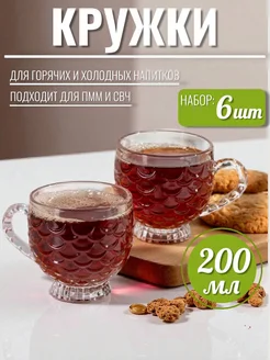 Набор кружек стеклянных прозрачных 6 шт для чая и кофе