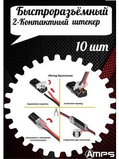 10шт 2-Контактный быстроразъёмный штекер для проводов